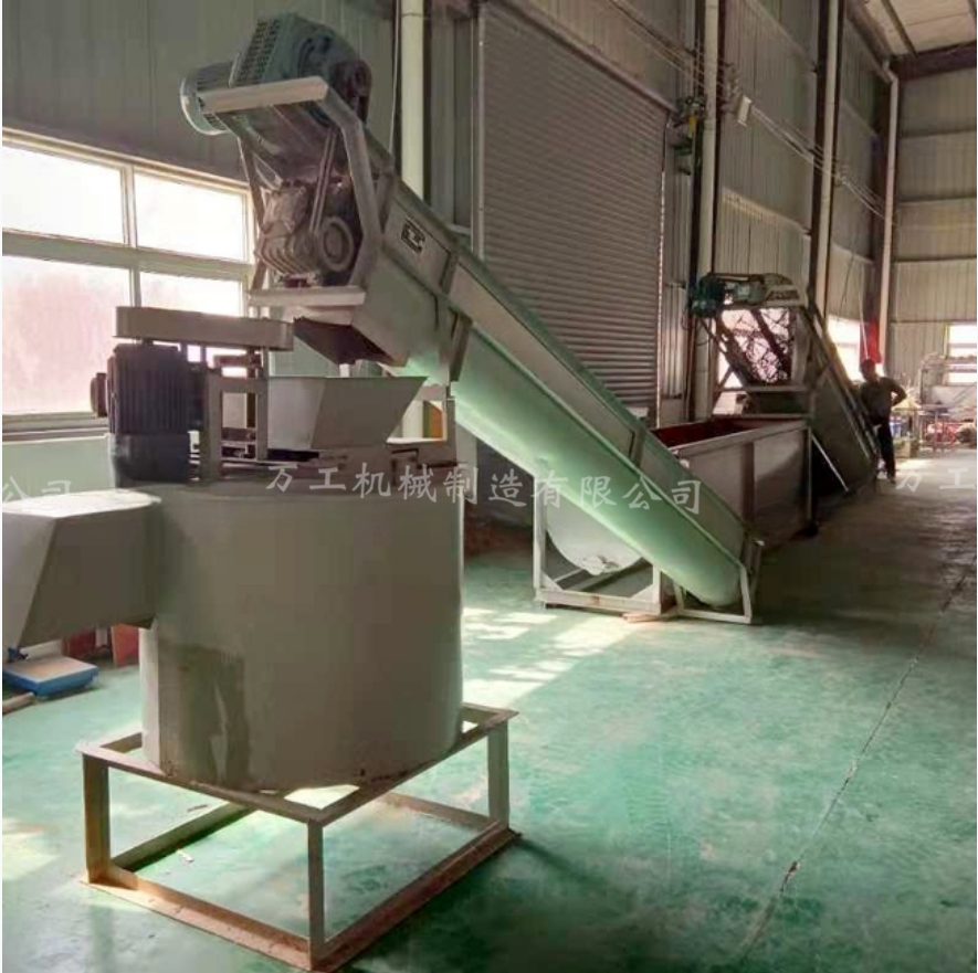 一套設備(清洗流水線)清洗過程分為預洗、主洗和漂洗。先利用脫標機進行脫標,就是將塑料瓶的外包裝去除掉。然后經輸送帶進入塑料破碎機進行破碎,再經輸送帶傳到凈水分離槽將肥料漂出,然后進入到鍋爐進行熱洗。在經過幾個凈水分離槽對破碎的塑料進行徹底的漂凈工作,很后又甩干機進行甩干。