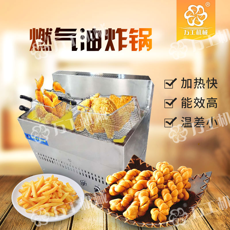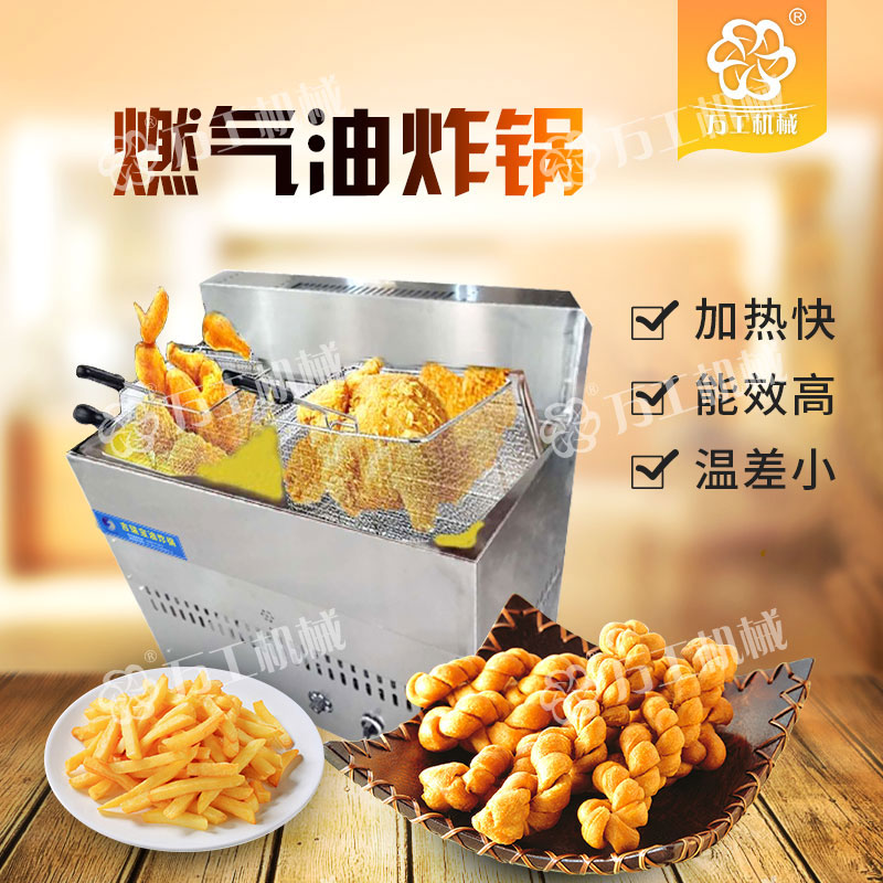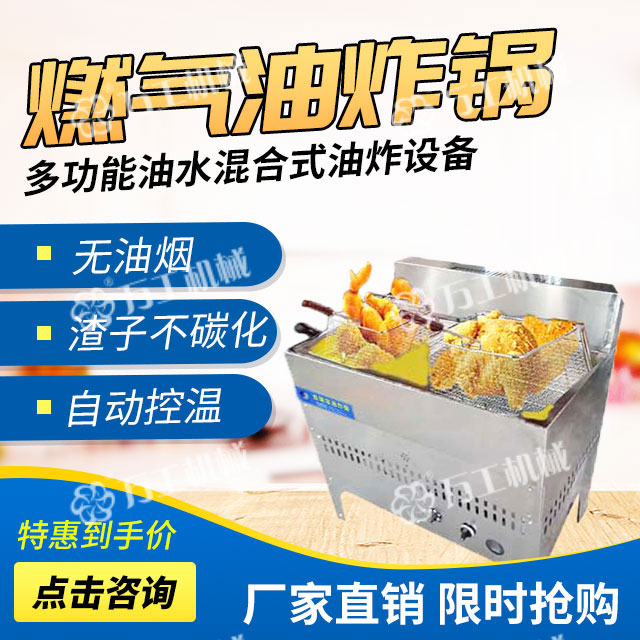 寶雞萬(wàn)工機(jī)械生產(chǎn)的燃?xì)庥驼ㄥ伿且环N無(wú)煙型、多功能、油水混合式油炸設(shè)備,該設(shè)備采取從油層中部加熱的方式,控制上下油層的溫度,有效緩解炸油的氧化程度,抑制酸介質(zhì)升高,在油炸過(guò)程中自動(dòng)過(guò)濾殘查、自動(dòng)控溫,從而延長(zhǎng)了機(jī)器的使用壽命。鍋體材質(zhì)為全不銹鋼,能效比高、清潔環(huán)保無(wú)污染,便于清渣,使用成本低,操作簡(jiǎn)單、安全。